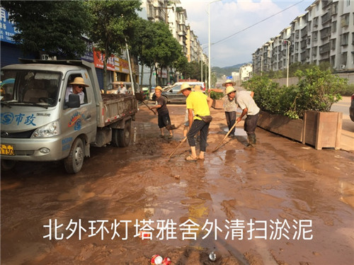 二是上下聯(lián)動(dòng),奮力除險(xiǎn),全力保障群眾安全。由于雨量過大,康藏路消防隊(duì)門口主干道積水達(dá)70厘米深,道路中斷,公司搶險(xiǎn)分隊(duì)組織隊(duì)員冒雨對(duì)排水口進(jìn)行疏通,以最快速度恢復(fù)道路通行;北外環(huán)青鼻山隧道外大量塌方,搶險(xiǎn)分隊(duì)立即在此處設(shè)置警示標(biāo)識(shí),并調(diào)配裝載機(jī)對(duì)塌方進(jìn)行清理,確保道路恢復(fù)正常通行。