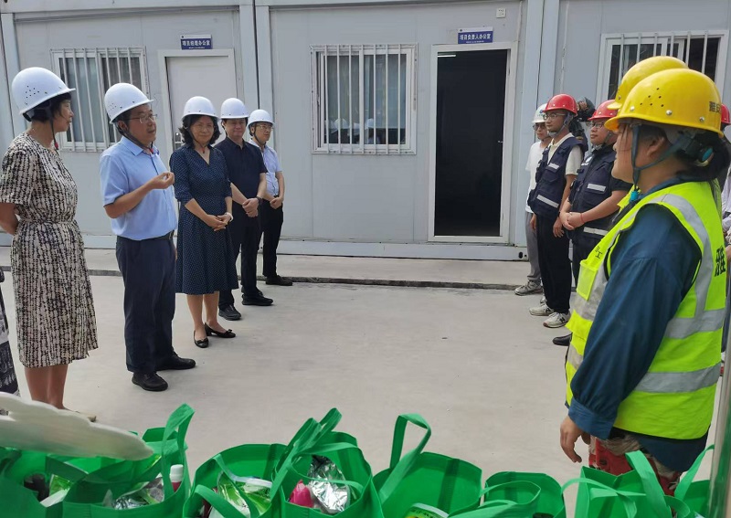 慰問組一行深入項(xiàng)目施工現(xiàn)場,詳細(xì)了解了項(xiàng)目的通風(fēng)降溫設(shè)施、防暑藥品配備、清涼飲品供應(yīng)、工人作息時間調(diào)整等關(guān)鍵防暑措施落實(shí)情況,并對施工現(xiàn)場的安全防護(hù)設(shè)施進(jìn)行了檢查。