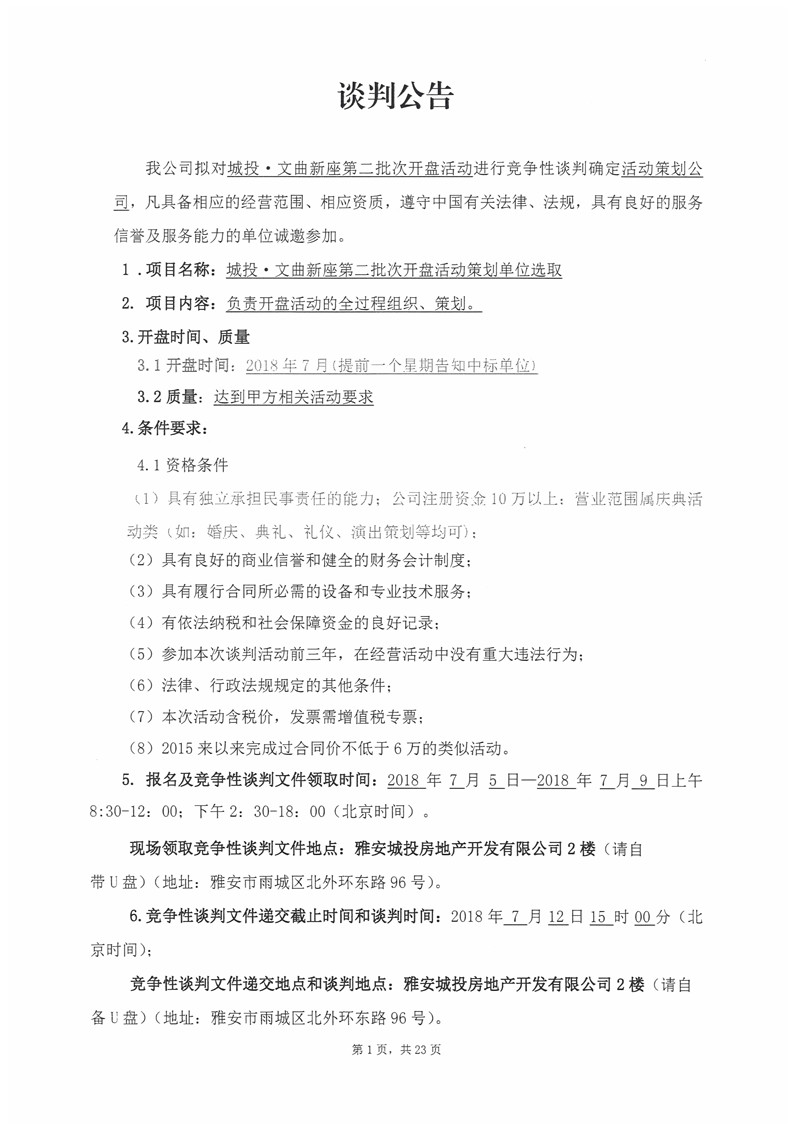 城投·文曲新座第二批次開盤活動(dòng)競爭性談判