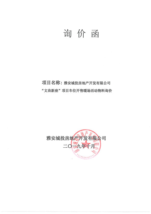 雅安城投房地產開發(fā)有限公司詢價函