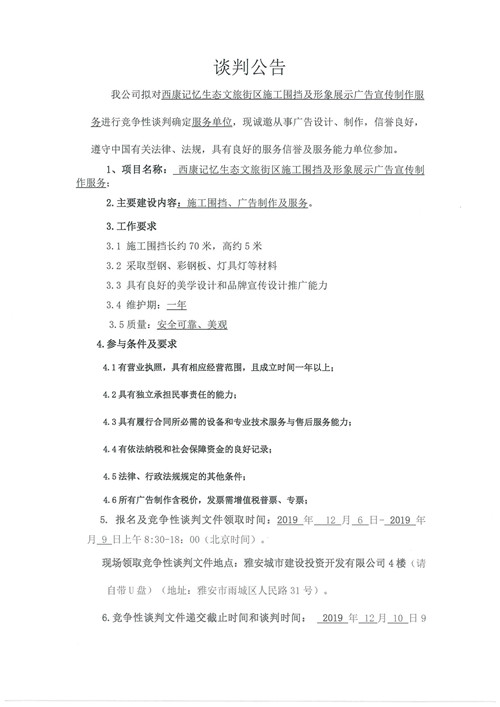 西康記憶生態(tài)文旅街區(qū)施工圍擋及形象展示廣告宣傳制作服務(wù)競(jìng)爭(zhēng)性談判公告