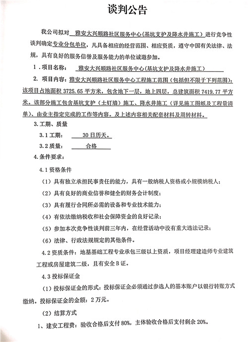 大興順路社區(qū)服務(wù)中心基坑支護(hù)及降水工程——競爭性談判