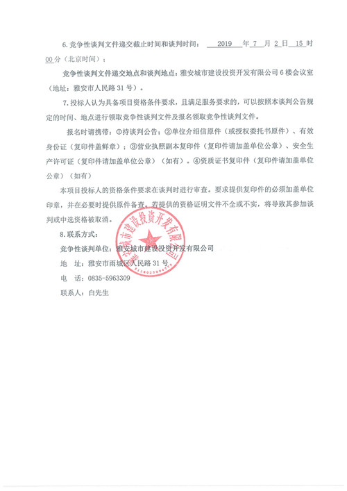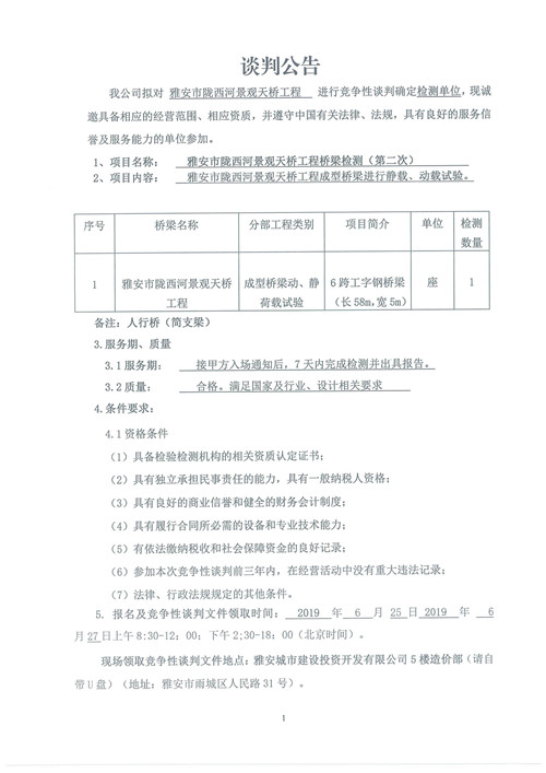 雅安市隴西河景觀天橋工程檢測(cè)競(jìng)爭(zhēng)性談判公告(第二次)