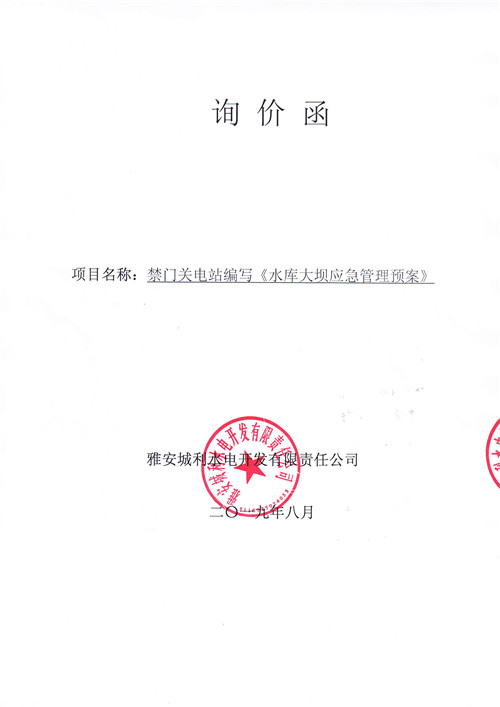 雅安城利水電開發(fā)有限責(zé)任公司禁門關(guān)電站編寫《水庫大壩應(yīng)急管理預(yù)案》競爭性談判公告