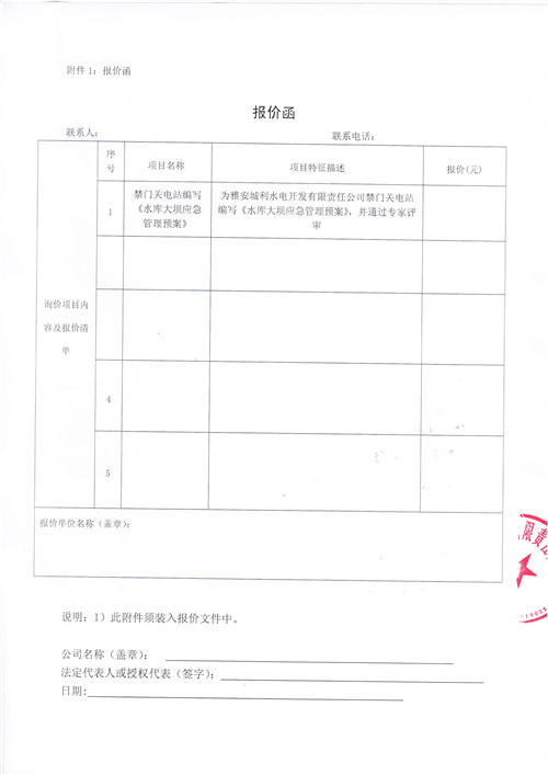 詢價函(《水庫大壩應(yīng)急管理預(yù)案》)
