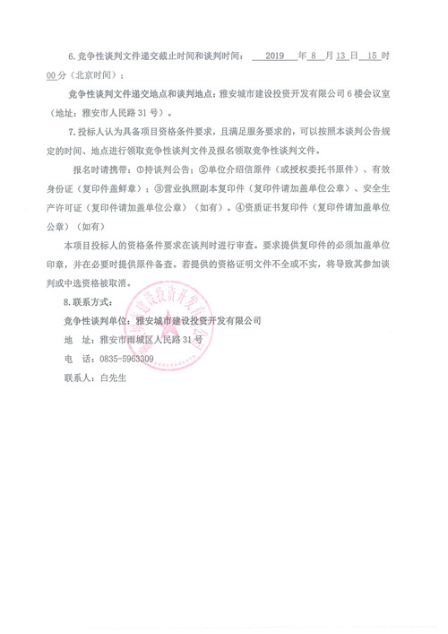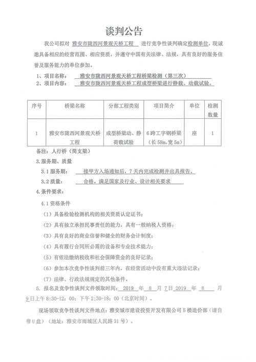 雅安市隴西河景觀天橋工程檢測(cè)競(jìng)爭(zhēng)性談判公告(第三次)
