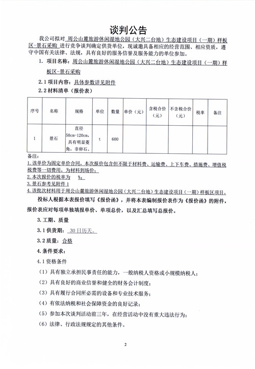 市政公司周公山麓旅游休閑濕地公園(大興二臺(tái)地)生態(tài)建設(shè)項(xiàng)目(一期)樣板區(qū)-景石采購(gòu)競(jìng)爭(zhēng)性談判
