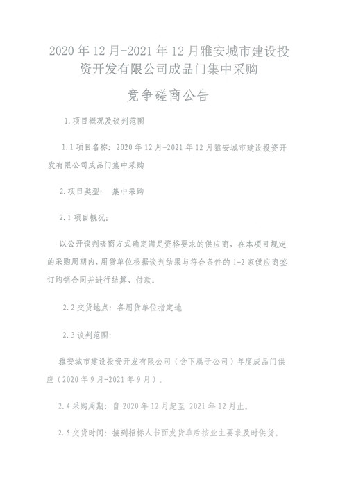 2020年12月-2021年12月雅安城市建設(shè)投資開(kāi)發(fā)有限公司成品門集中采購(gòu)競(jìng)爭(zhēng)磋商公告