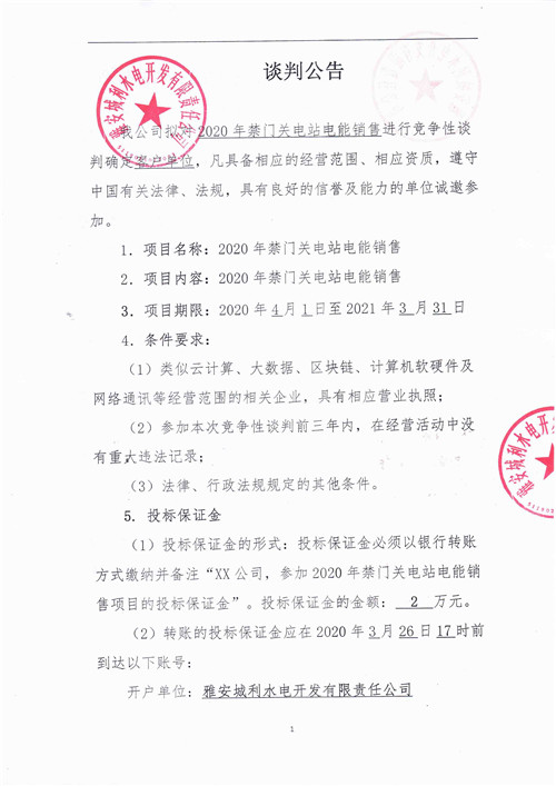 城利水電公司2020年禁門關(guān)電站電能銷售競(jìng)爭(zhēng)性談判公告