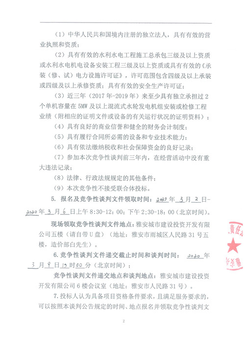 城利水電公司羅家灣電站1#水輪發(fā)電機(jī)組A級(jí)檢修工程競(jìng)爭(zhēng)性談判公告