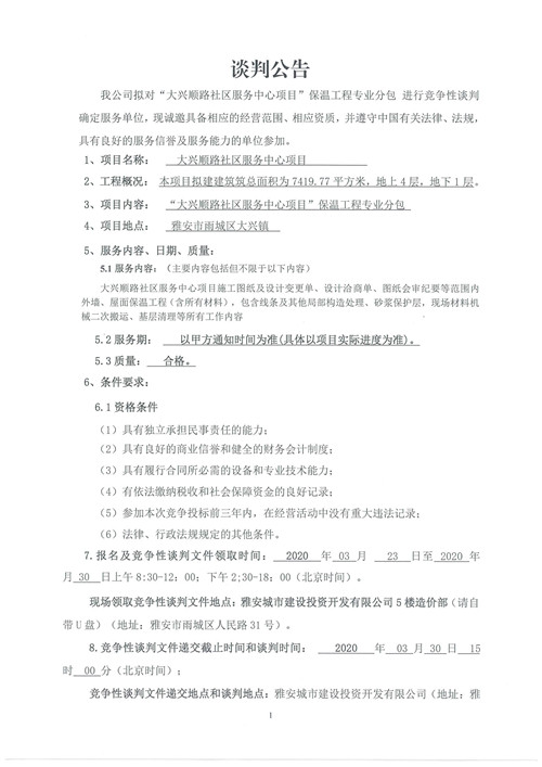 城投建工“大興順路社區(qū)服務中心項目”保溫工程專業(yè)分包競爭性談判公告