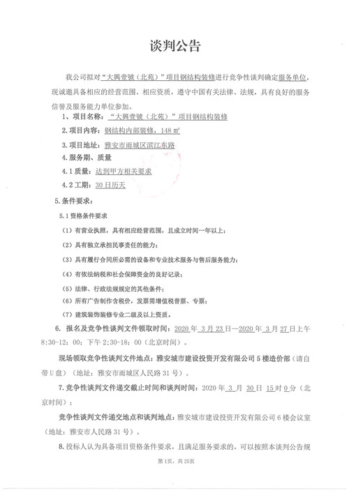 城投建工“大興壹號(hào)(北苑)”項(xiàng)目鋼結(jié)構(gòu)裝修競(jìng)爭(zhēng)性談判公告