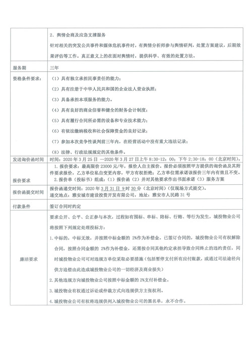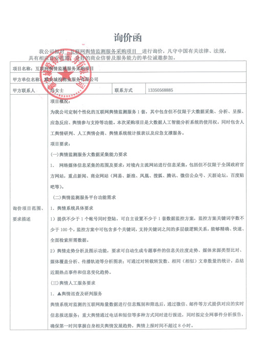 城投物業(yè)公司互聯(lián)網(wǎng)輿情監(jiān)測服務(wù)采購項(xiàng)目詢價(jià)函