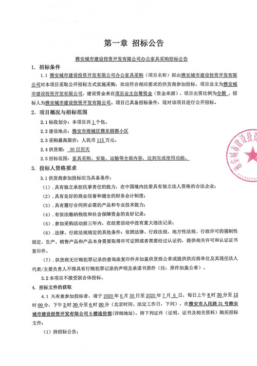 城投公司辦公家具采購(gòu)招標(biāo)公告