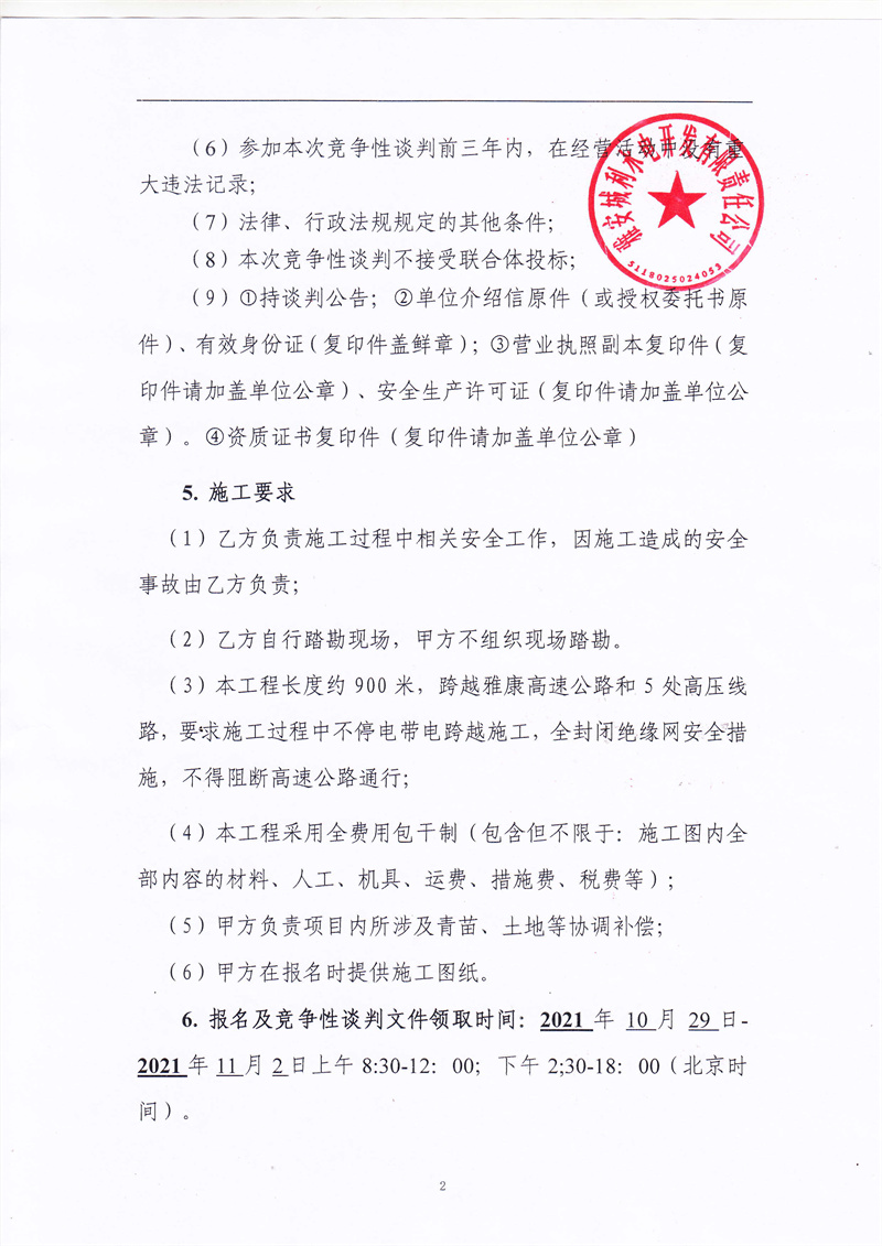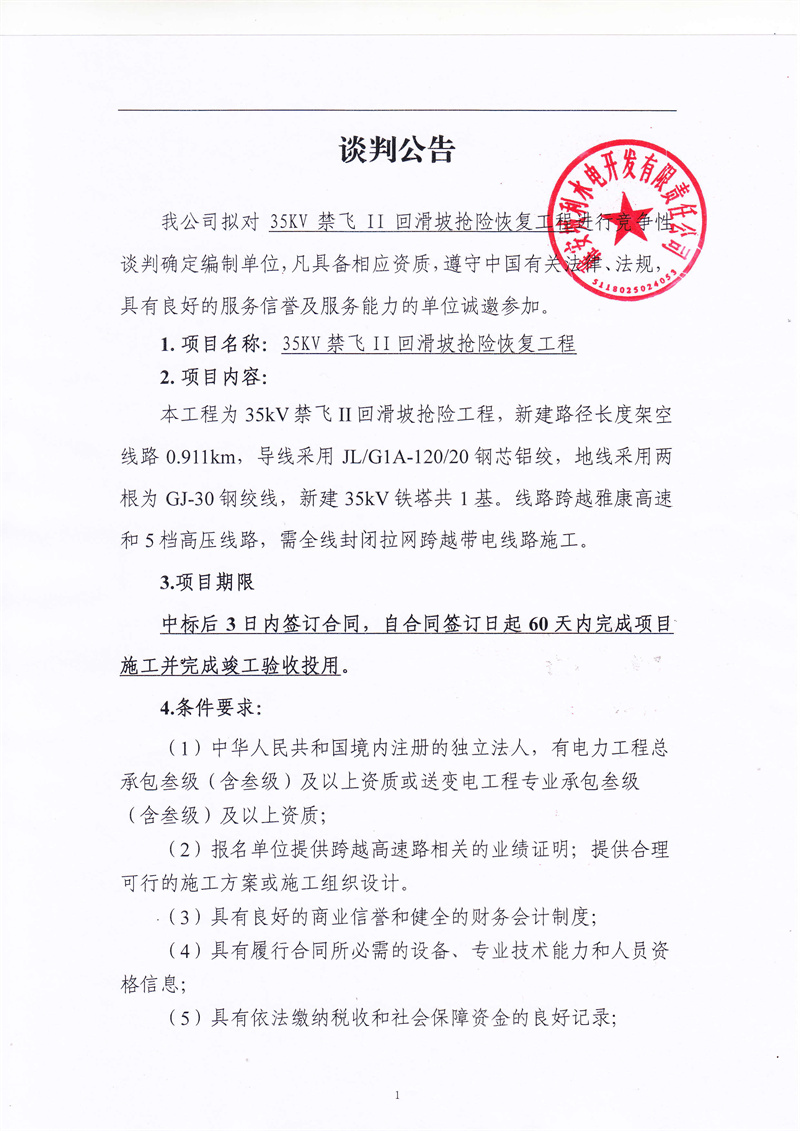 城利水電公司35kv禁飛II回滑坡?lián)岆U(xiǎn)恢復(fù)工程競(jìng)爭(zhēng)性談判