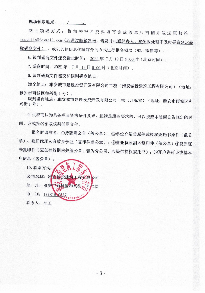 蒙頂壹號項目主樓、總坪、北側(cè)大門幕墻鋼結(jié)構(gòu)工程談判磋商公告
