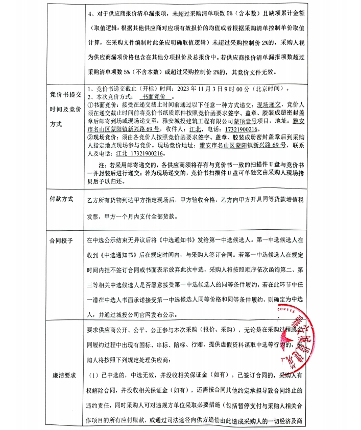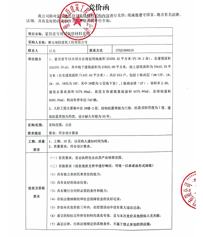 蒙頂壹號(hào)項(xiàng)目裝修材料采購(gòu)競(jìng)價(jià)公告
