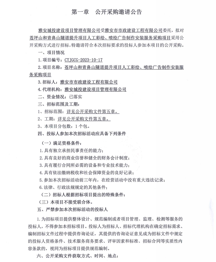 蒼坪山和青鼻山隧道提升項(xiàng)目人工彩繪、噴繪廣告制作安裝服務(wù)采購(gòu)項(xiàng)目公開采購(gòu)邀請(qǐng)公告