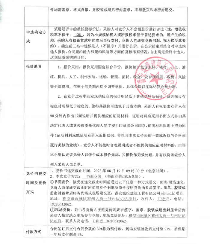 雅安市西康記憶生態(tài)文旅街區(qū)項(xiàng)目一號(hào)地塊木格花、裝飾板采購競價(jià)公告