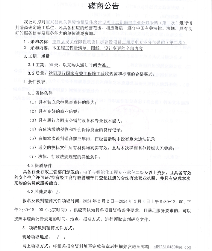 寶興縣靈關(guān)保障性租賃住房建設(shè)項(xiàng)目二期弱電專業(yè)分包采購(gòu)(第二次)談判磋商公告