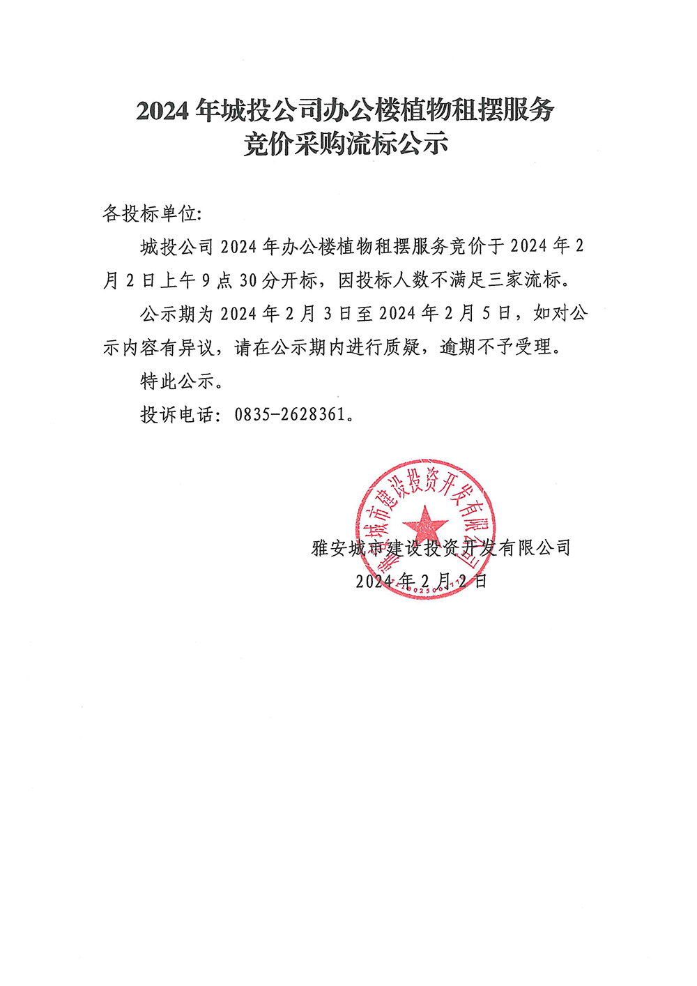 2024年城投公司辦公樓植物租擺服務(wù)競(jìng)價(jià)采購(gòu)流標(biāo)公示