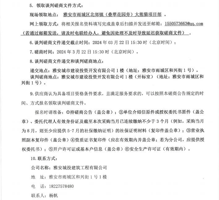雅安大熊貓自然博物館游客接待中心及科普宣教中心項目熱水系統(tǒng)專業(yè)分包采購(第三次)磋商公告