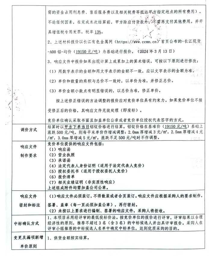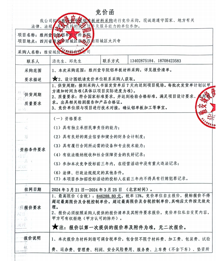 響應(yīng)文件格式-雅州壹號院鋁單板材料采購