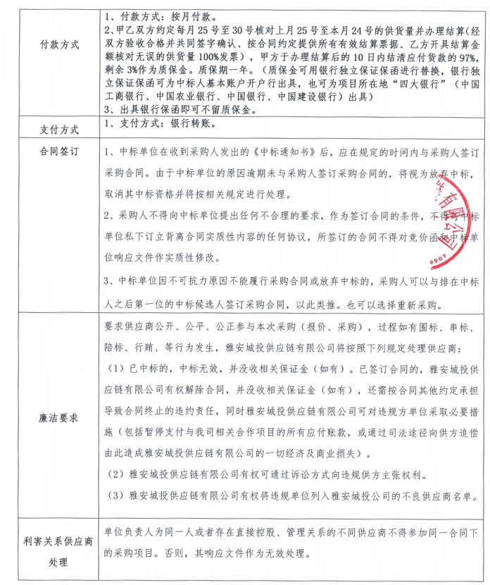雅安城投供應(yīng)鏈有限公司電線電纜采購競價公告
