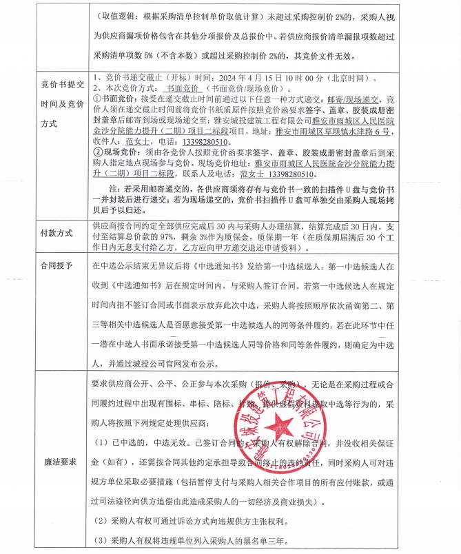 雅安市雨城人民醫(yī)院金沙分院能力提升(二期)項目二標段定制柜、隔斷及軟包采購競價公告