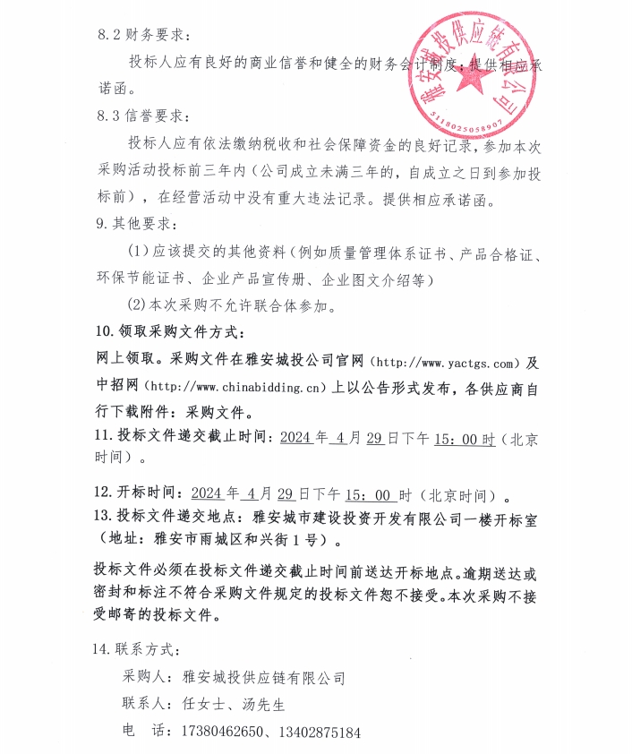 2024年4月至2025年3月雅安城投供應(yīng)鏈有限公司年度管件、管材材料采購公告