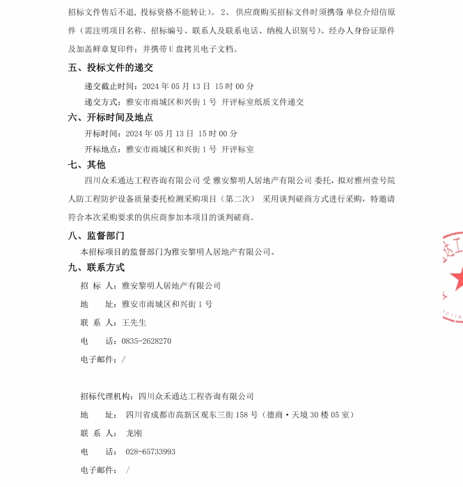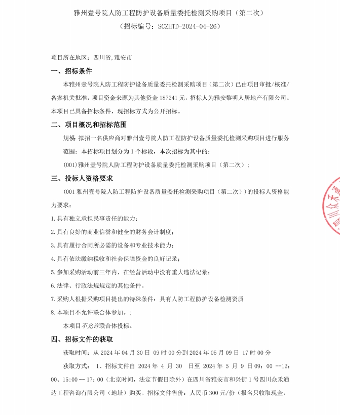 雅州壹號(hào)院人防工程防護(hù)設(shè)備質(zhì)量委托檢測(cè)采購項(xiàng)目(第二次)公告