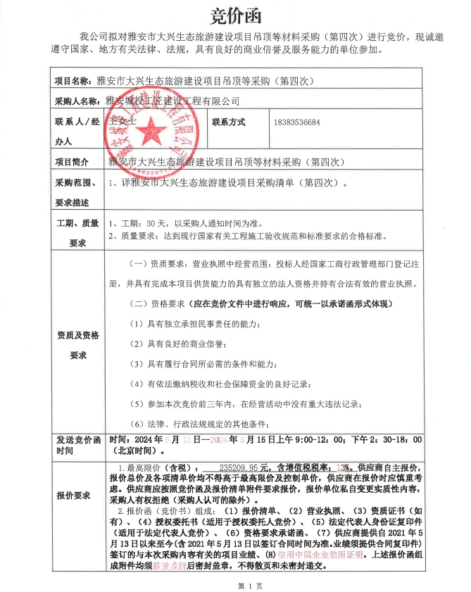 雅安市大興生態(tài)旅游建設(shè)項(xiàng)目吊頂?shù)炔牧喜少彛ǖ谒拇危└們r文件