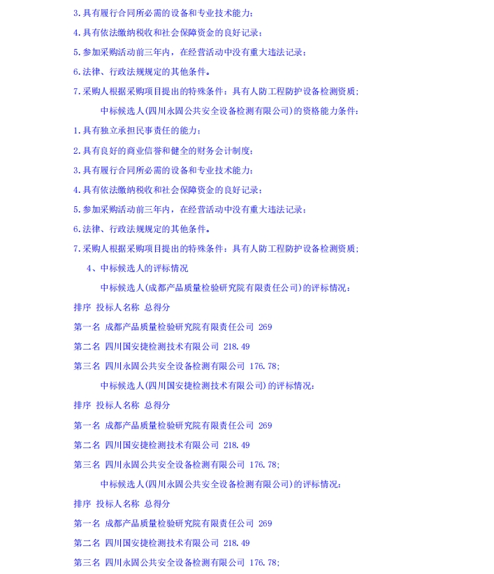 雅州壹號院人防工程防護(hù)設(shè)備質(zhì)量委托檢測采購項(xiàng)目(第二次)中標(biāo)候選人公示