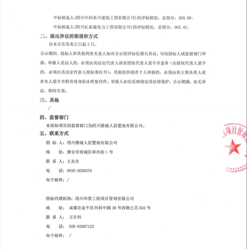 雅州印臨時(shí)用電工程中標(biāo)候選人公示