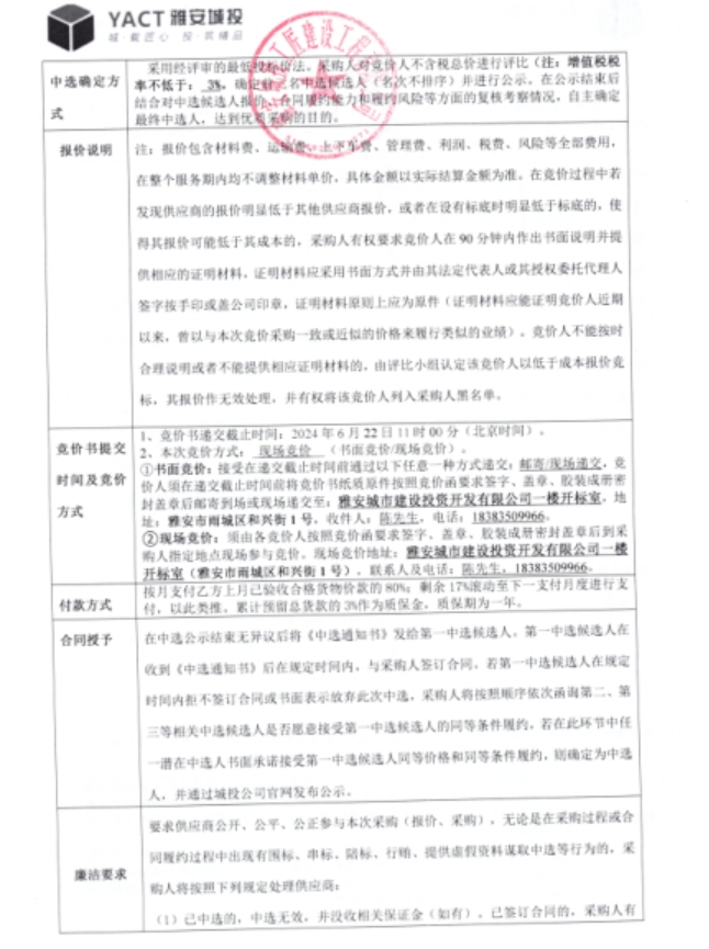 雅安市大興生態(tài)旅游建設項目洗凈細白沙材料采購(二次)競價公告