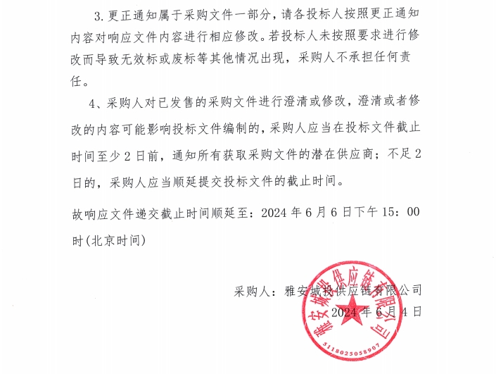 雅安城投供應(yīng)鏈有限公司碎石采購更正通知(一)