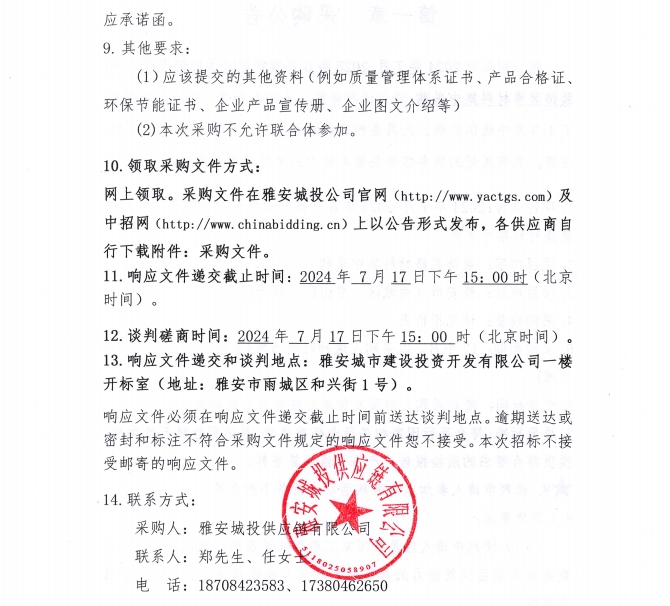 2024年7月-2025年6月雅安城投供應鏈有限公司裝飾裝修材料集中采購公告