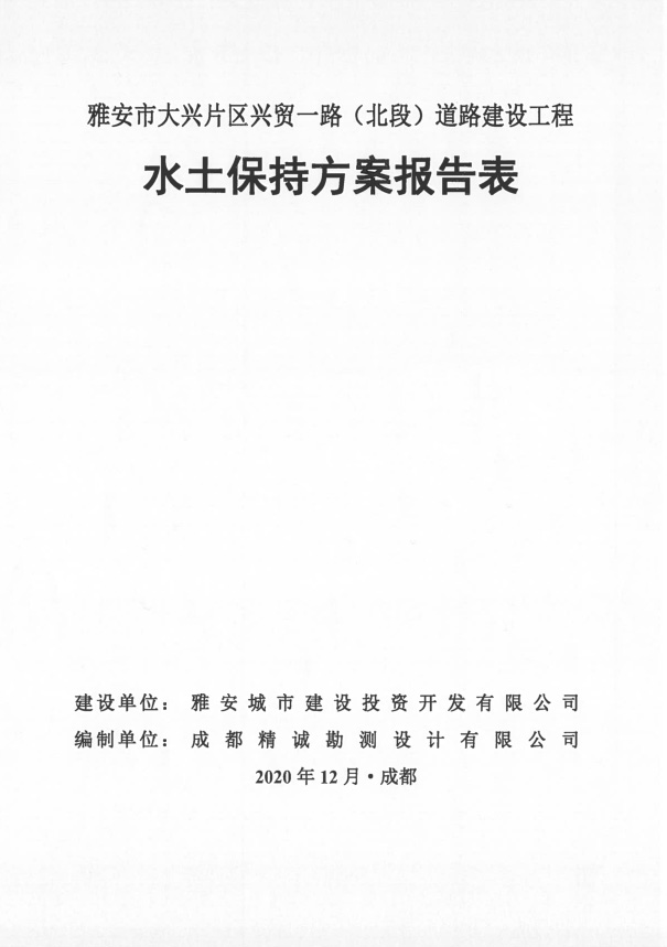 雅安市大新片區(qū)興貿(mào)一路(北段)道路建設(shè)工程水土保持方案